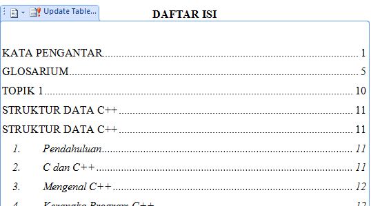 Cara membuat Daftar Isi Otomatis Word 2007 Lengkap - membuat daftar isi
